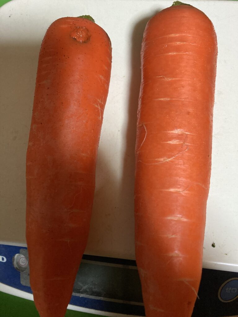 今年のにんじんは、例年より虫食いが多く、